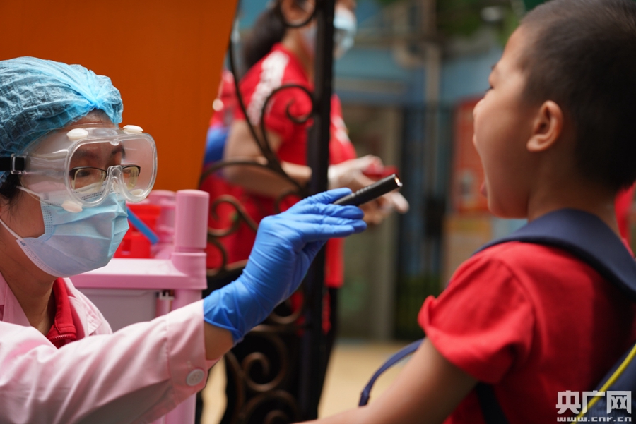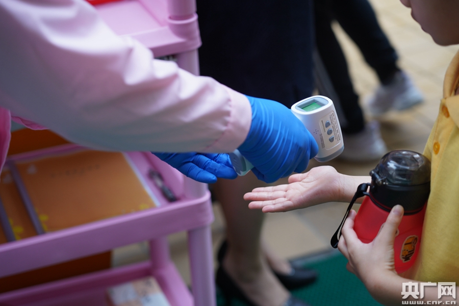 李宏說,在開學(xué)的第一天,幼兒園特別為每一個(gè)幼兒準(zhǔn)備了一個(gè)小音樂盒,作為小禮物,消除幼兒們長(zhǎng)時(shí)間沒有回來的心理畏懼。同時(shí),在進(jìn)入幼兒園時(shí),除了對(duì)幼兒們進(jìn)行體溫檢測(cè),還加大了常見急性傳染病防控力度,特地增設(shè)了晨檢的環(huán)節(jié)。李宏介紹,“進(jìn)園前的安全檢查就會(huì)多一個(gè)程序,我們叫晨檢。家長(zhǎng)要陪著小孩子走到門口以后,我們有衛(wèi)生保健醫(yī)生,跟小孩子先量體溫,量完體會(huì)就要檢查,五官,包括他的口腔,看一下他的里面有沒有口腔潰瘍,還看看有沒有眼睛發(fā)紅,我們不光是量體溫,是幼兒園的一個(gè)特點(diǎn)!