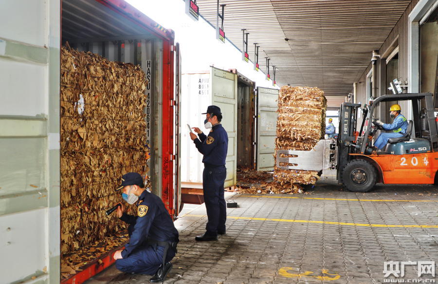 海關關員對進口廢紙進行查驗(王軼星 攝)