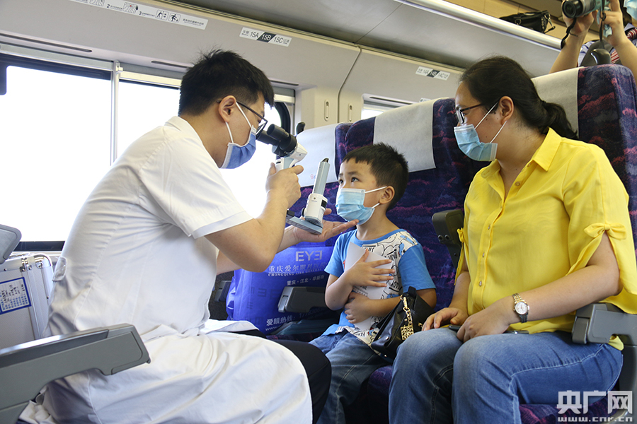 央廣網(wǎng)重慶6月6日消息(記者趙聰聰 通訊員鐘潔 趙思云)“近距離用眼過多和戶外活動時間過少,是導(dǎo)致近視的主要環(huán)境因素,疫情期間許多孩子都存在這樣的情況,因此需要增加戶外時間,讓孩子暴露在大自然光線環(huán)境下!6月5日,重慶客運(yùn)段的C6004次列車上,重慶某專業(yè)眼科醫(yī)院黨員志愿者高陽醫(yī)生對前來咨詢的黃女士說道。