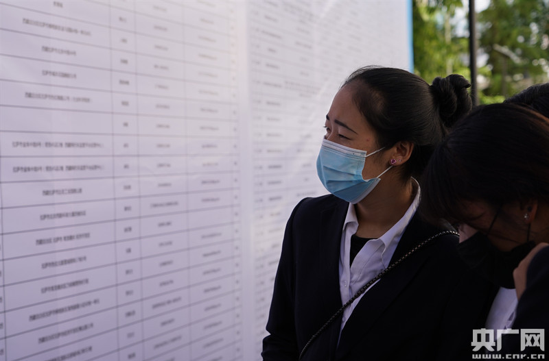 畢業(yè)生在招聘會(huì)現(xiàn)場(chǎng)瀏覽崗位信息(央廣網(wǎng)見(jiàn)習(xí)記者 卜鵬 攝)