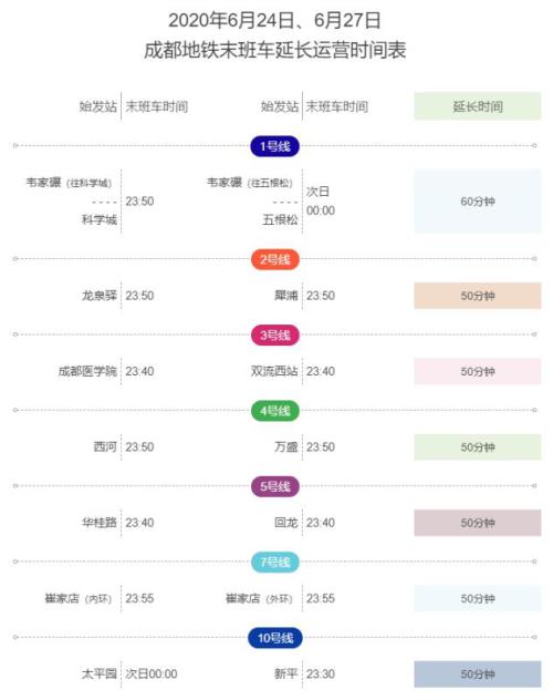 端午節(jié)期間,成都地鐵端午節(jié)前一天及節(jié)假日最后一天(6月24日、6月27日),各線路將延長運營服務時間50-60分鐘,同時通過增加備用車數(shù)量、靈活采取回段列車及備用列車加開上線等調(diào)整手段,做好大客流情況下的運力保障。
