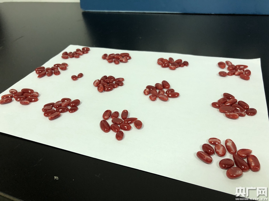6月1日,廣州海關(guān)所屬廣州郵局海關(guān)在對進(jìn)境郵件進(jìn)行X光機(jī)檢查時,發(fā)現(xiàn)1件由境外寄往廣州、申報品名為“比色色階樣(三色合)”的進(jìn)境郵件圖像顯示郵包內(nèi)為高密度顆粒狀物品,與“小石頭”的成像十分接近。這引起了查驗關(guān)員的警覺:“大老遠(yuǎn)寄一包石頭?里面可能有‘貓膩’!”關(guān)員立即對郵件進(jìn)行開拆查驗,發(fā)現(xiàn)該郵件內(nèi)是一包用密封袋包裝的鮮紅色“石頭”,做工精致,質(zhì)地瑩潤,光澤亮麗,還有些許的粉白色生長紋路,線條流暢,疑似紅珊瑚制品,共計122顆。