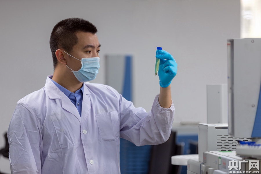 翁志坤對(duì)毒品樣品進(jìn)行分析檢測(cè)(央廣網(wǎng)發(fā) 丘永忠 攝)