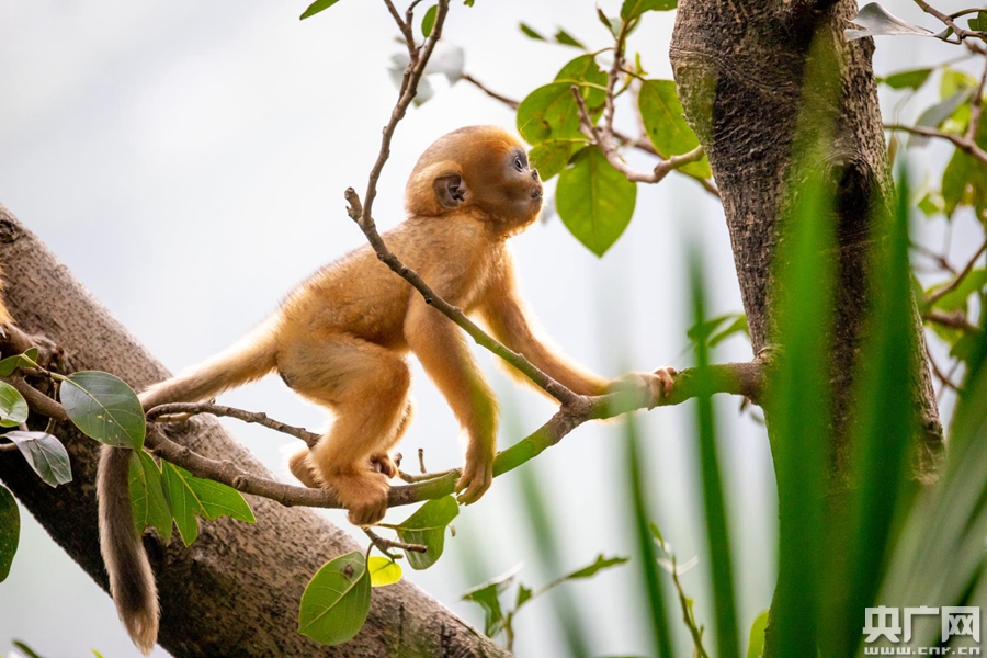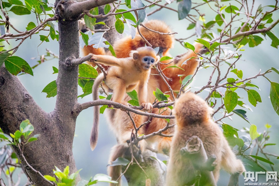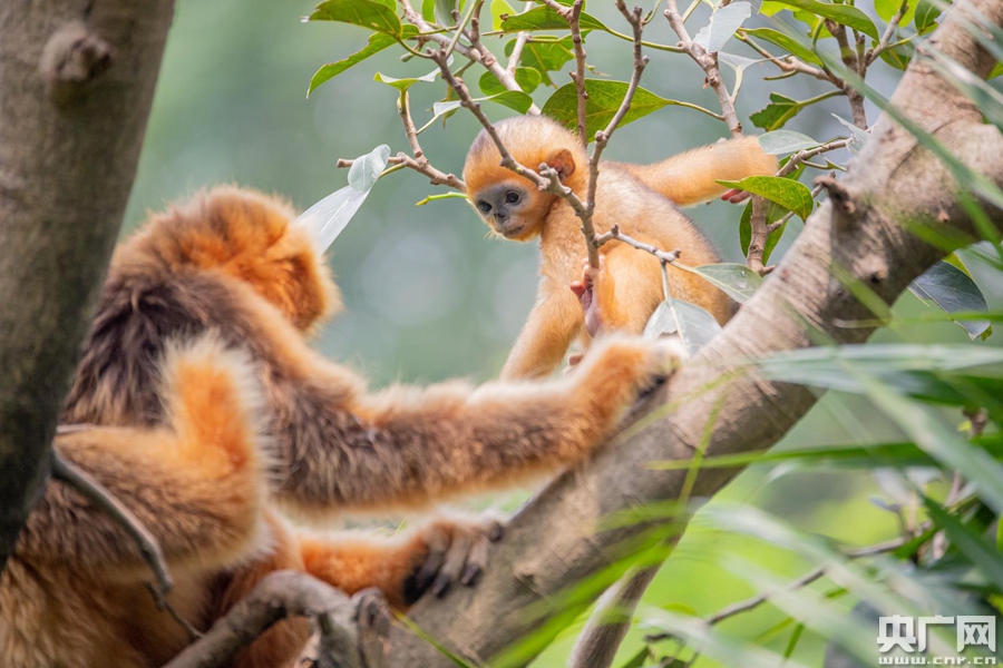 目前,川金絲猴的幼崽各項生長指標(biāo)良好,已經(jīng)熟悉金猴王國各項“設(shè)備”,能靈活騰躍到樹梢上,動作像飛鳥一樣矯健。