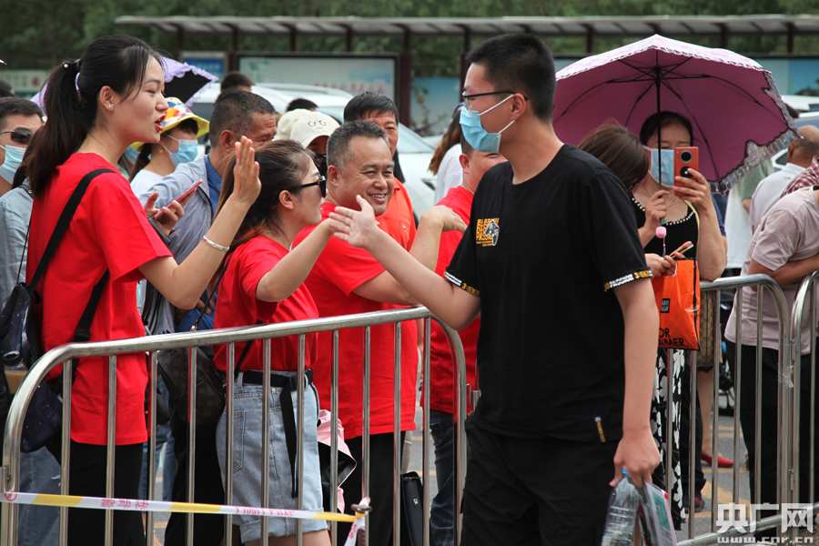 老師為考生加油(總臺央廣記者 徐升 攝)