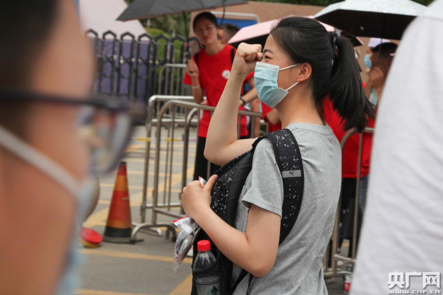 考生為自己加油打氣(總臺央廣記者 徐升 攝)