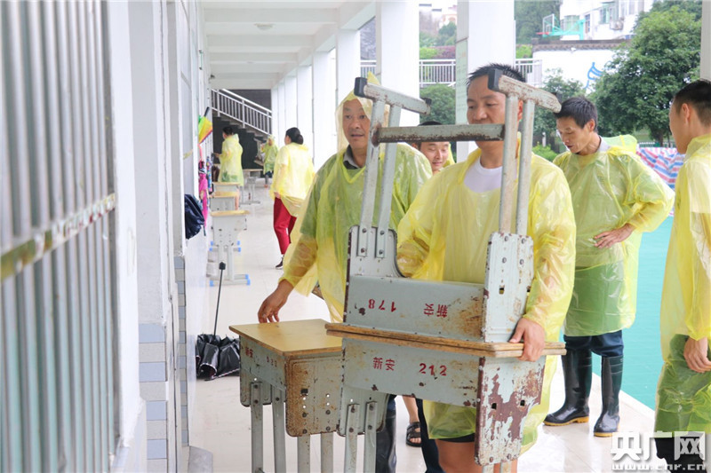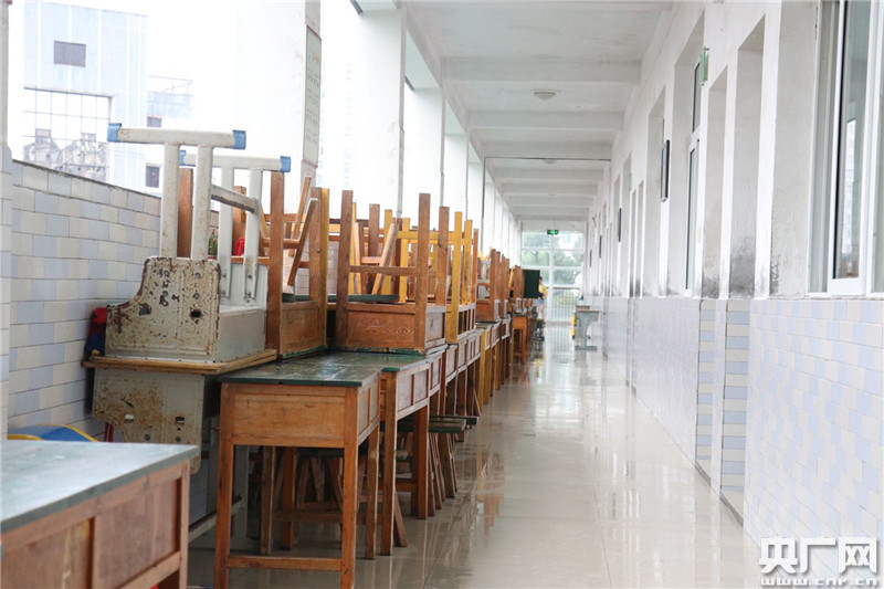 工作人員將桌椅有序搬進(jìn)考場(chǎng)。(央廣網(wǎng)記者徐鵬 攝)