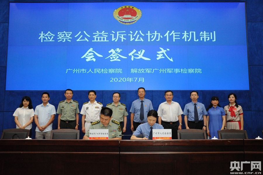 廣州軍地檢察機(jī)關(guān)聯(lián)合簽訂公益訴訟協(xié)作機(jī)制(央廣網(wǎng)發(fā) 廣州市人民檢察院供圖)