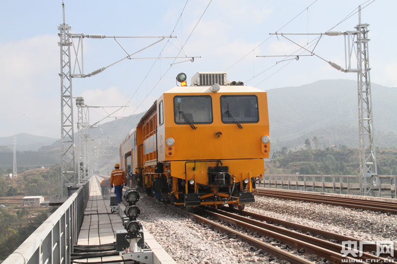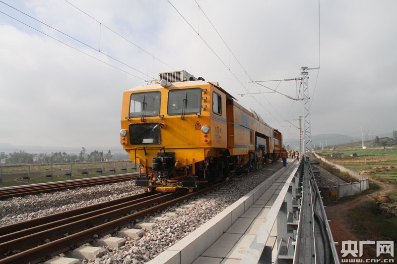 “新建的鐵路不是立馬就能讓火車在鐵道上奔跑的,還需要通過大型養(yǎng)路設(shè)備進(jìn)行線路整修,才能達(dá)到列車上線運行的標(biāo)準(zhǔn)!敝袊F路昆明局集團(tuán)昆明工務(wù)機(jī)械段現(xiàn)場作業(yè)負(fù)責(zé)人李飛介紹,“剛安放好鋼軌的線路還存在著底部石砟不足,鋼軌平直度不夠,軌道間距不一等問題,只能供施工列車慢速通行,需要經(jīng)過多次整修,才能使線路達(dá)標(biāo),滿足客貨列車開行條件!