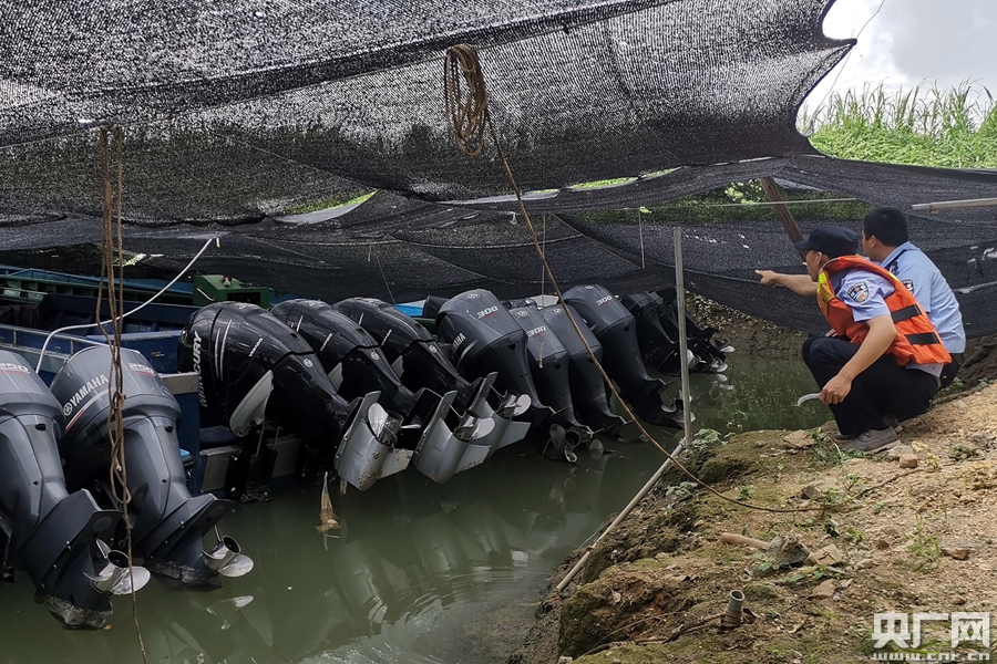 聯(lián)合行動組查獲的裝有多臺馬達(dá)的走私快艇(央廣網(wǎng)發(fā) 海關(guān)供圖)