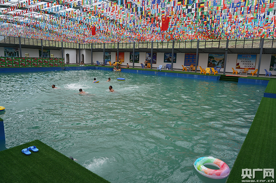 贊堂社區(qū)新建設(shè)的戶外游泳池項(xiàng)目已經(jīng)完工,豐富了當(dāng)?shù)匕傩盏膴蕵?lè)方式(央廣網(wǎng)記者 王宇 攝)