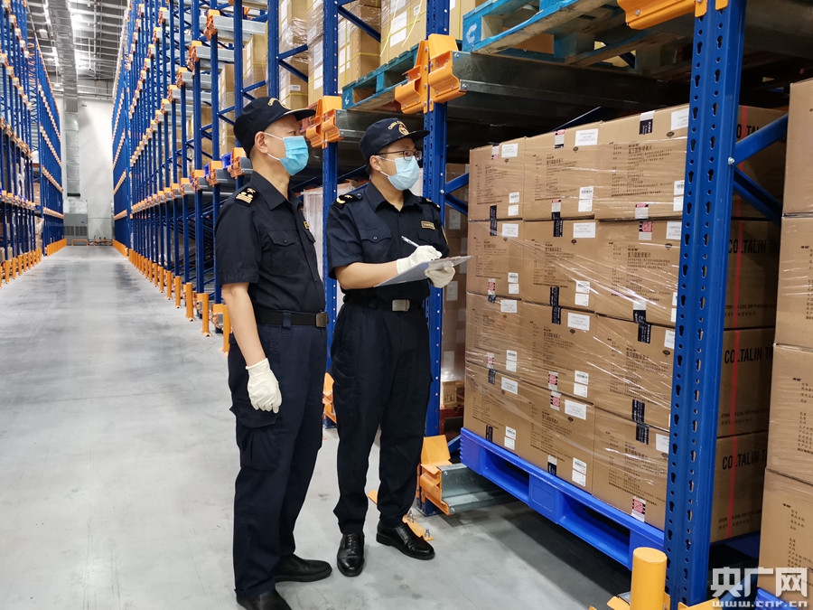 圖為廣州海關所屬南沙海關關員在南沙保稅港區(qū)生物醫(yī)藥企業(yè)倉庫進行巡倉(央廣網發(fā) 劉尊嚴 攝)