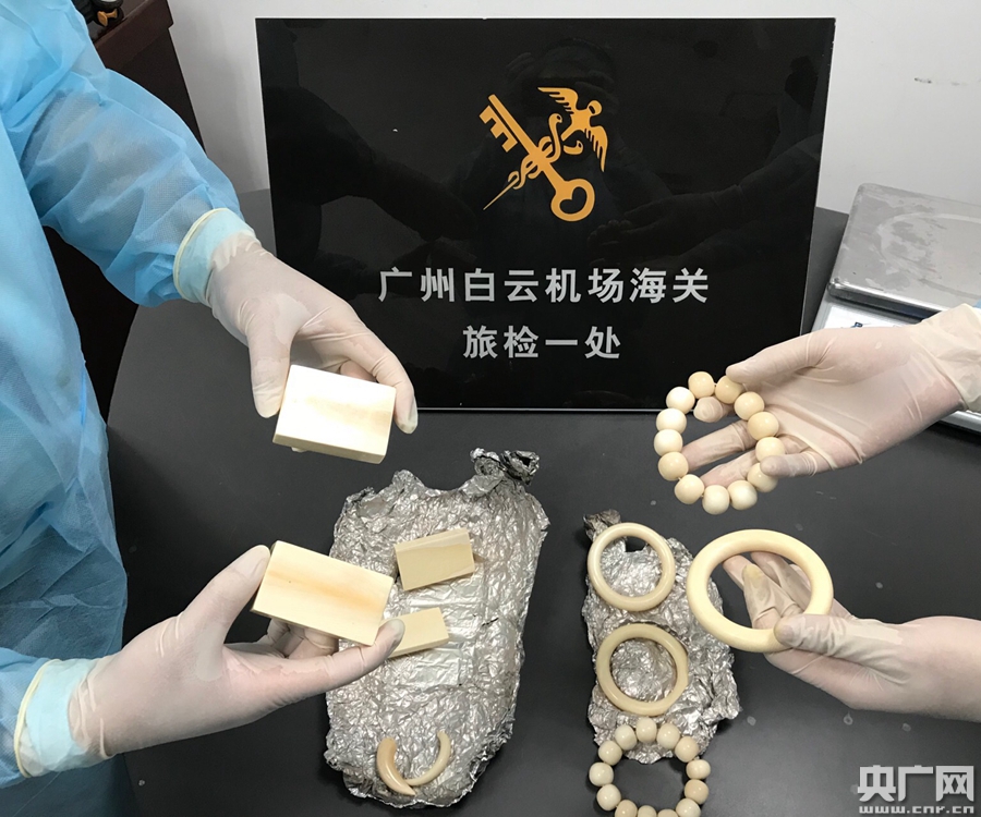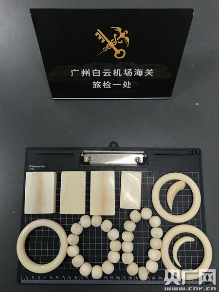 廣州白云機(jī)場海關(guān)查獲的象牙制品(央廣網(wǎng)發(fā) 呂依 攝)
