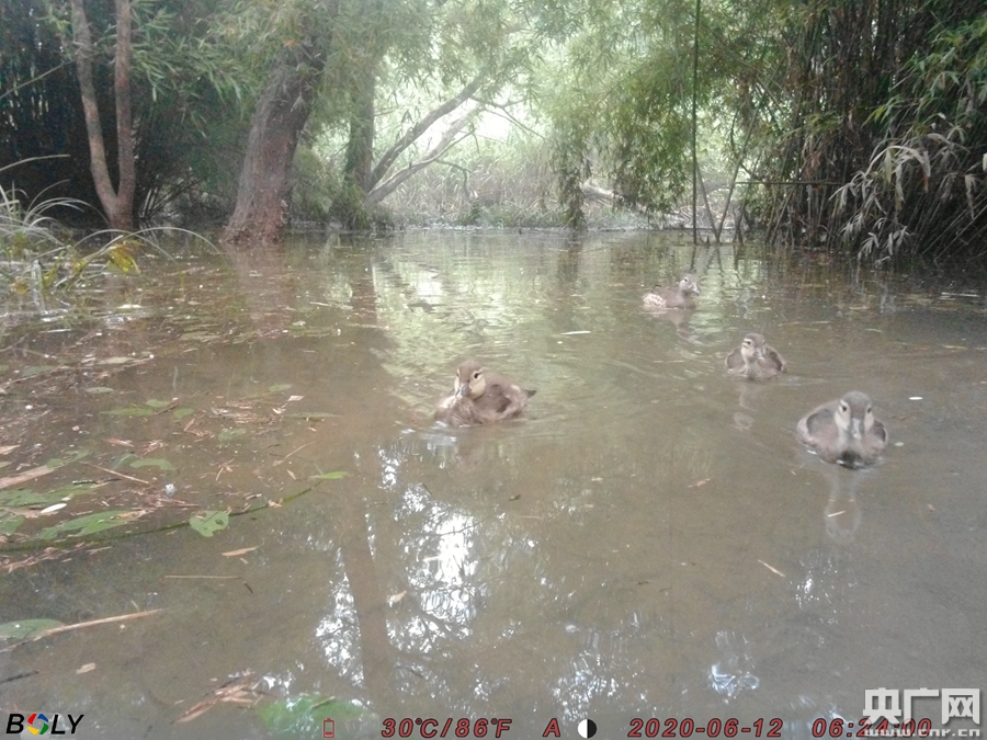 據(jù)悉,今年3月,一對進入繁殖期的野生鴛鴦出現(xiàn)在車八嶺保護區(qū)。兩個月后,影像中的鴛鴦媽媽帶著三只可愛的毛茸茸的小寶寶,出門玩耍,這一切均被保護區(qū)的紅外相機記錄下來。此后,三只可愛的“小毛球”一直跟著“媽媽”活動,學習游泳、覓食、梳理毛發(fā)等等。據(jù)保護區(qū)工作人員介紹,根據(jù)記錄,大部分情況下三只雛鳥和親鳥一起活動,主要行為有跟隨、游泳、覓食、梳理等,活動時間最早記錄為清晨6時,最晚持續(xù)到約19時。這對鴛鴦家庭的影像記錄一直持續(xù)到了6月底。這位工作人員告訴記者,這應該是由于三只小雛鳥已經(jīng)從萌噠噠的“小毛球”慢慢成長為“棱角分明”的“小大人”的樣子。