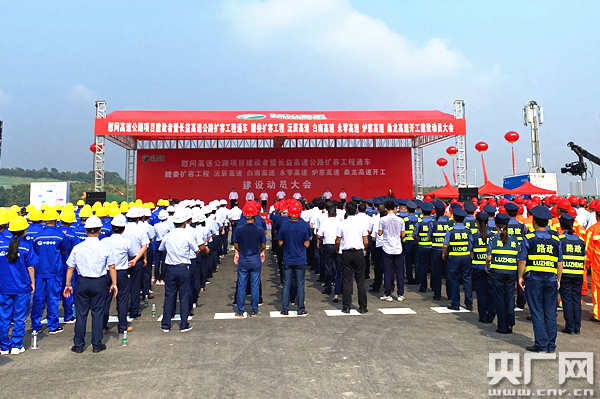 長益高速擴(kuò)容工程正式通車、6條高速開工建設(shè)動員大會現(xiàn)場(央廣網(wǎng)記者 堯遙 攝)