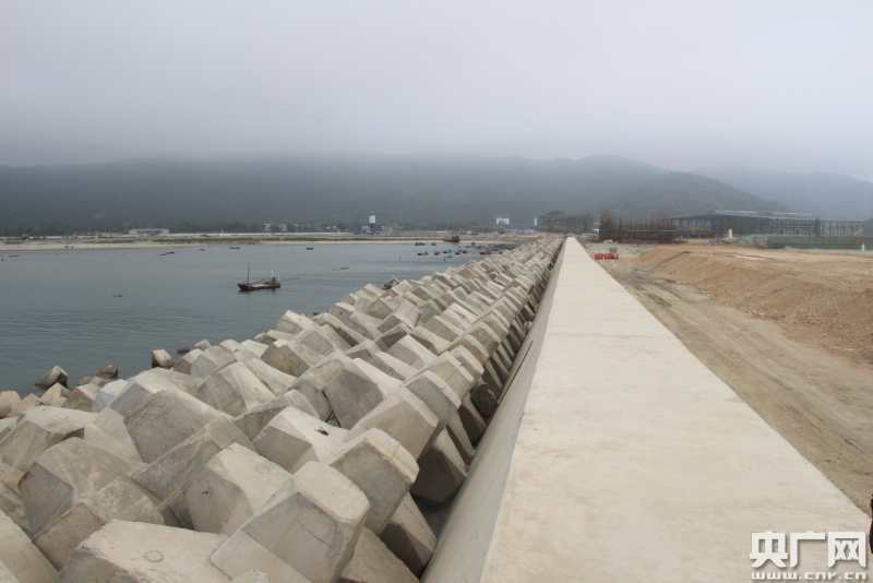 當(dāng)事企業(yè)在超出海域使用權(quán)證書(shū)批準(zhǔn)用海范圍的情況下擅自圍海、填海作業(yè)(央廣網(wǎng)發(fā) 廣東海警局供圖)