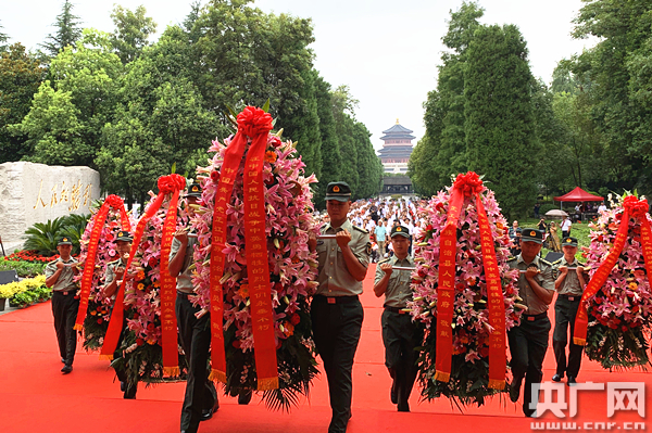 向抗戰(zhàn)烈士敬獻花籃(央廣網(wǎng)發(fā) 覃昆 攝)