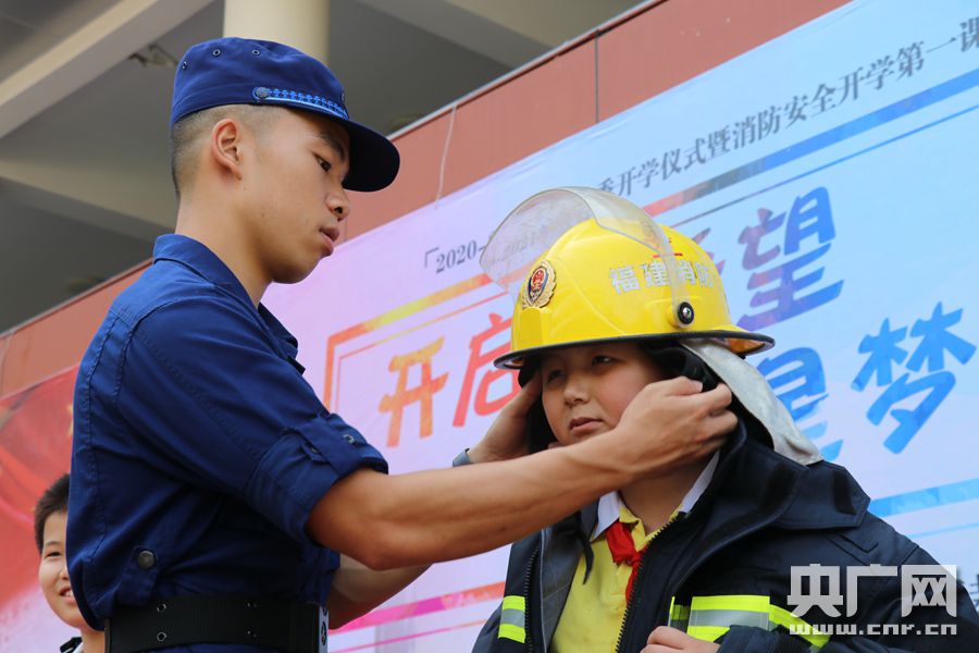 央廣網(wǎng)福州9月4日消息(記者張子亞)“你知道消防服有什么作用嗎,發(fā)生火災(zāi)你應(yīng)該怎么辦?”,秋季開學(xué)之際,消防指戰(zhàn)員走進(jìn)校園,耐心地在向?qū)W生面對(duì)面講解消防安全常識(shí)。