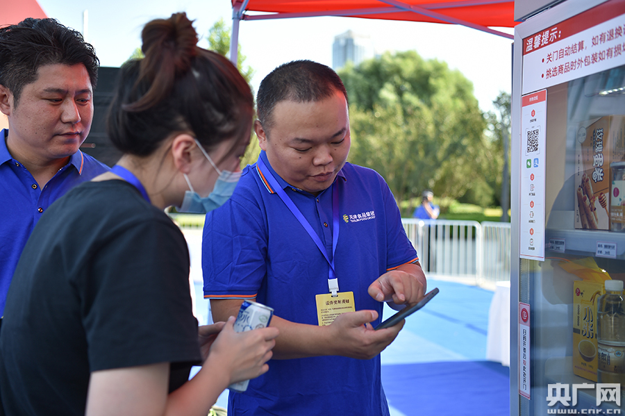天津食品集團(tuán)職工向民眾介紹扶貧產(chǎn)品(央廣網(wǎng)發(fā) 天津市合作交流辦供圖)