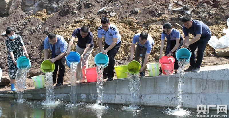 增殖放流現(xiàn)場(央廣網(wǎng)發(fā) 重慶市公安局江北區(qū)分局供圖)