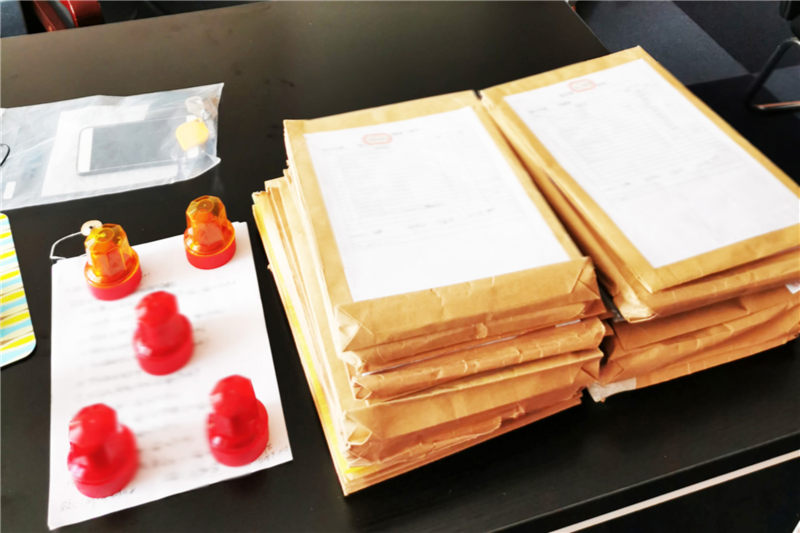 警方現(xiàn)場(chǎng)查獲印章、合同等涉案物品(央廣網(wǎng)發(fā) 警方供圖)