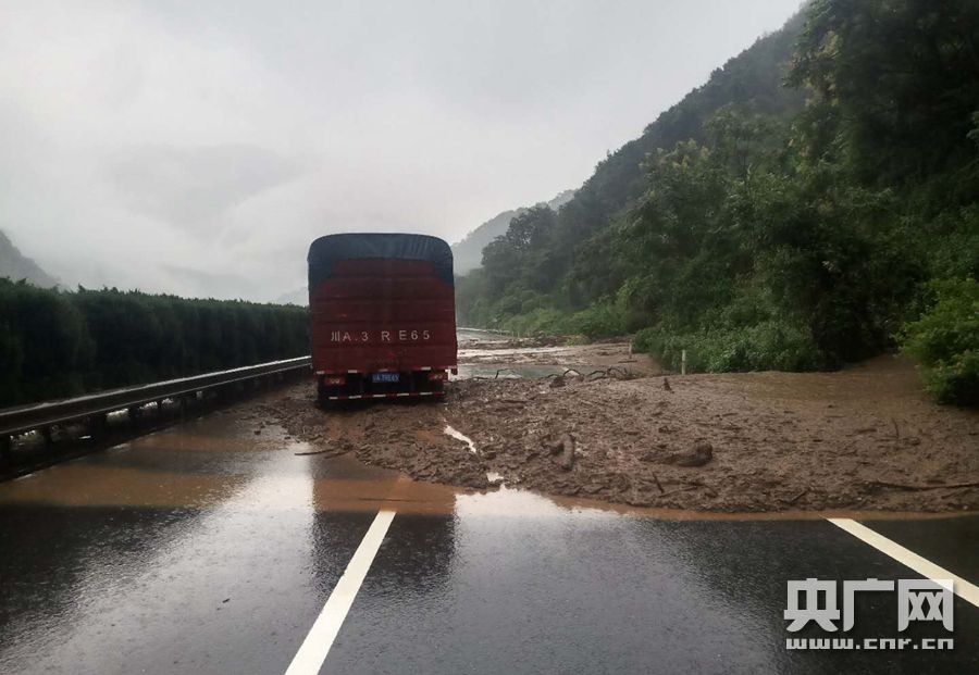 京昆高速因泥石流中斷(央廣網(wǎng)發(fā) 四川高速交警六分局供圖)
