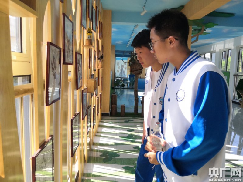 兩位同學(xué)正在參觀生態(tài)科普館(央廣網(wǎng)發(fā) 城陽區(qū)野生動(dòng)植物保護(hù)協(xié)會(huì)供圖)