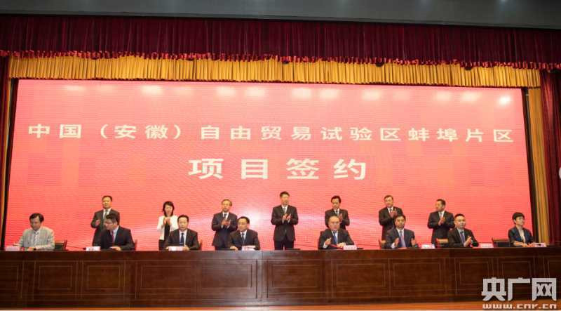 中國(安徽)自由貿(mào)易試驗(yàn)區(qū)蚌埠片區(qū)首批項(xiàng)目簽約。(央廣網(wǎng)發(fā) 陳昂 攝)