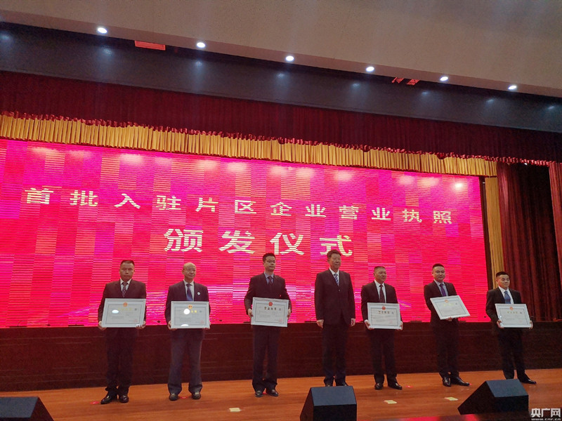 首批頒發(fā)六家企業(yè)營業(yè)執(zhí)照。(央廣網(wǎng)記者 徐秋韻 攝)