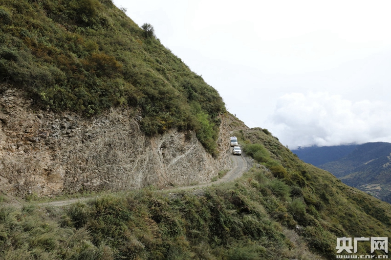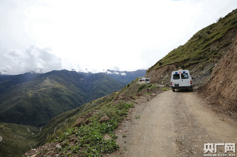 送醫(yī)車(chē)隊(duì)駛過(guò)崎嶇的山路(中央廣播電視總臺(tái)央廣記者 普布次仁 攝)