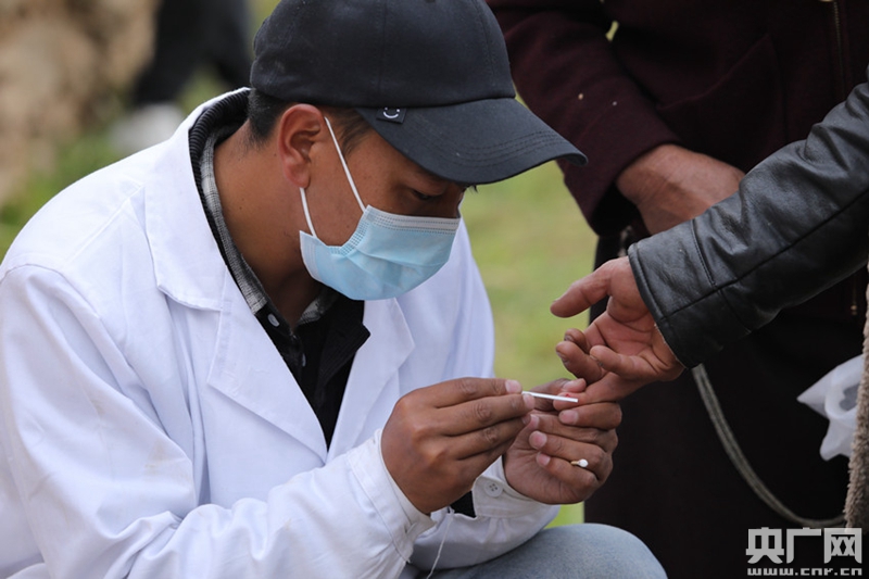 醫(yī)生們?yōu)榇迕窈Y查乙肝等病癥(中央廣播電視總臺(tái)央廣記者 普布次仁 攝)