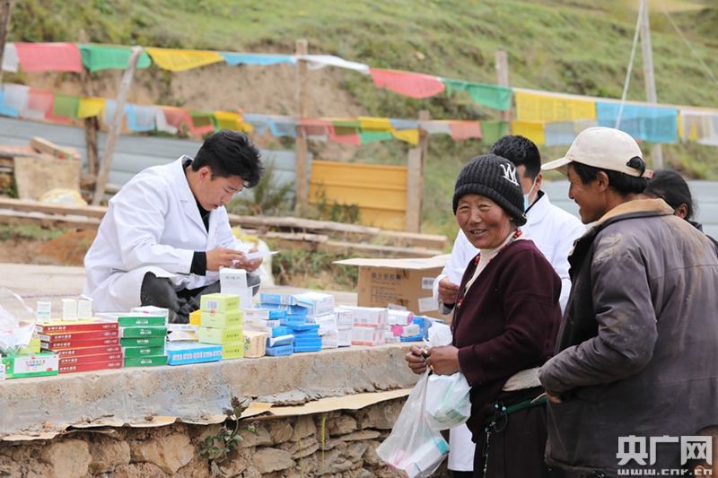 醫(yī)生為村民發(fā)放藥物(中央廣播電視總臺(tái)央廣記者 普布次仁 攝)
