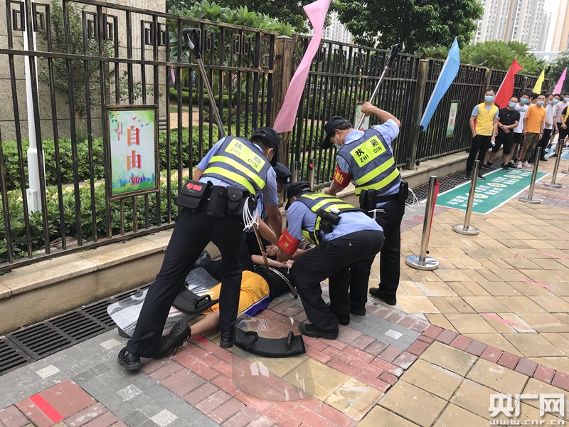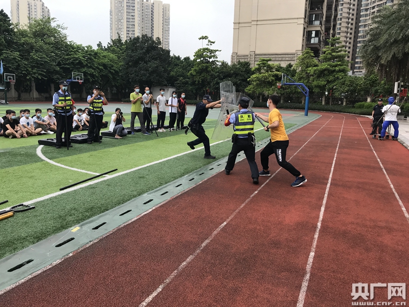 現(xiàn)場教學(xué):學(xué)校保安、老師合作阻擊“危險人員”進(jìn)入學(xué)校安全防線(央廣網(wǎng)發(fā) 海珠警方供圖)