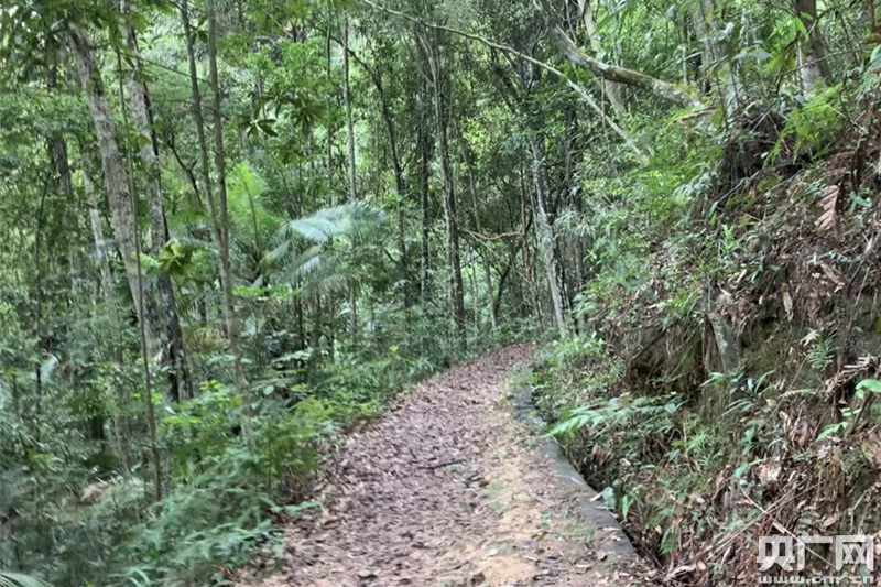 保護(hù)區(qū)內(nèi)的山路,四周密布著原始次生林(央廣網(wǎng) 王雪薇 攝)