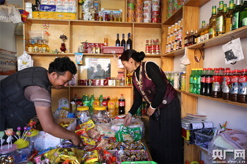 江措和妻子正在打理家中的小商店(中央廣播電視總臺央廣記者普布次仁 攝)