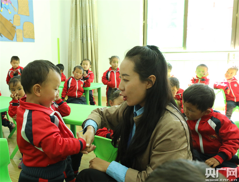 搬遷安置點的小孩正在小區(qū)內的幼兒園上課(中央廣播電視總臺央廣記者普布次仁 攝)