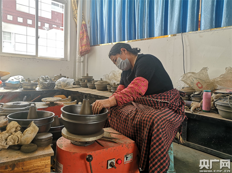 安置點的搬遷戶正在產業(yè)園內工作(中央廣播電視總臺央廣記者普布次仁 攝)