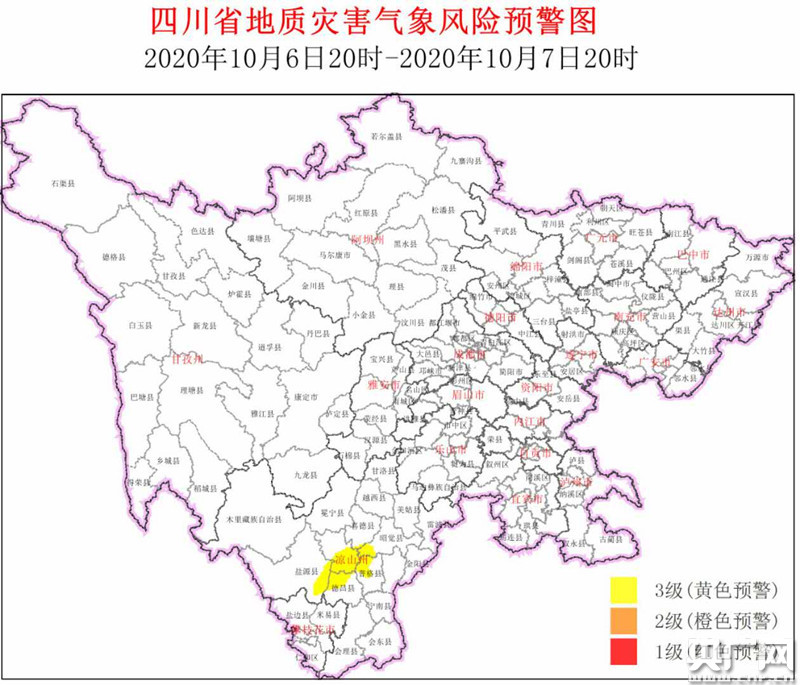 3級(jí)黃色預(yù)警示意圖(央廣網(wǎng)發(fā) 四川省地質(zhì)災(zāi)害指揮部辦公室供圖)