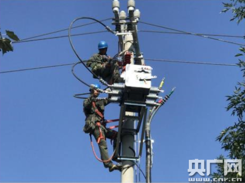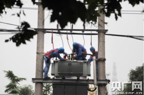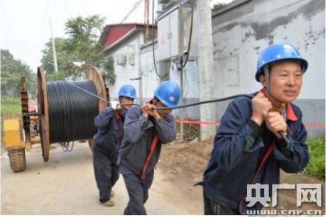 國網(wǎng)石家莊市藁城區(qū)供電公司施工人員正為城區(qū)“煤改電”項目(央廣網(wǎng)發(fā) 吳煒供圖)