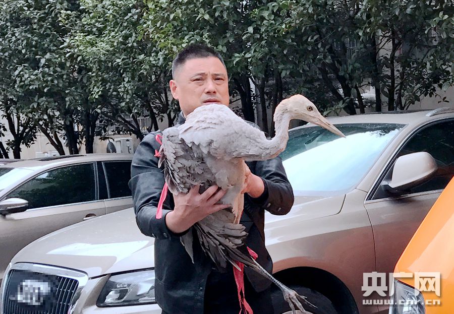 工作人員救助二級保護動物灰鶴(央廣網(wǎng)發(fā) 通訊員供圖)