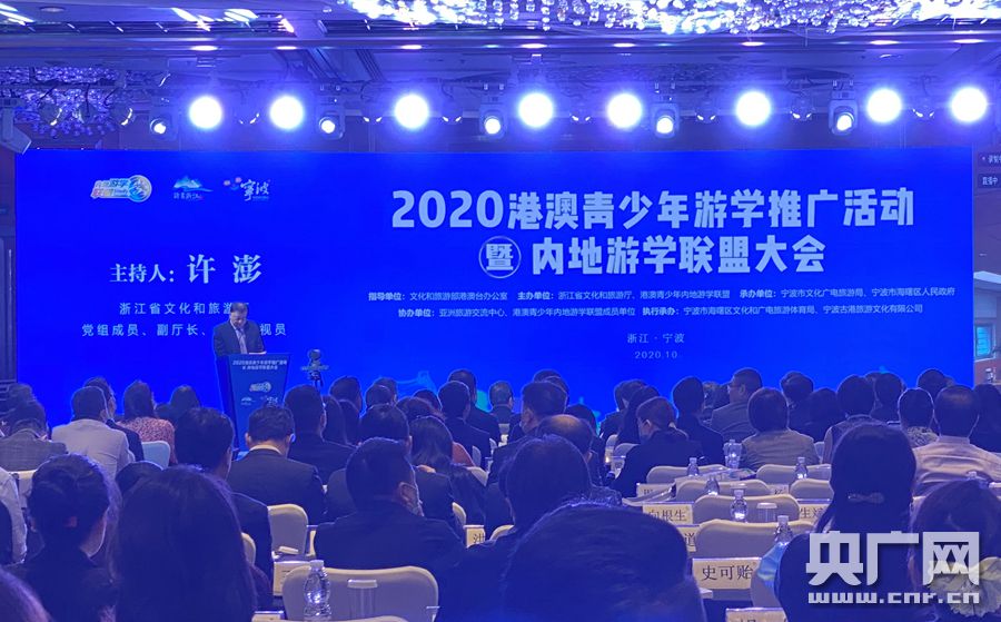 央廣網(wǎng)寧波10月27日消息(記者曹美麗 通訊員張正偉)10月27日上午,2020港澳青少年游學(xué)推廣活動暨內(nèi)地游學(xué)聯(lián)盟大會在寧波舉行。來自全國各地和港澳地區(qū)的文化旅游、教育等部門嘉賓和文旅企業(yè)機(jī)構(gòu)負(fù)責(zé)人濟(jì)濟(jì)一堂,就擴(kuò)大內(nèi)地與港澳青少年友好交流和后疫情時代共拓研學(xué)游市場建言獻(xiàn)策。