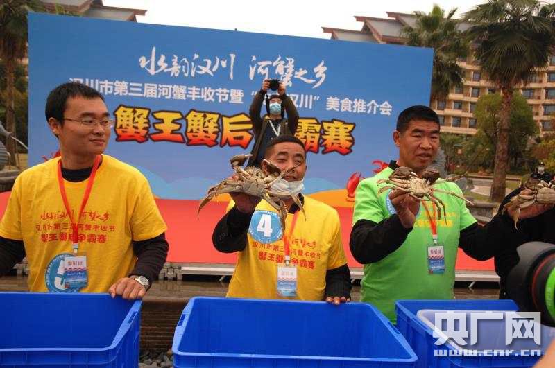 央廣網(wǎng)漢川10月28日消息(記者凌姝 通訊員 郭俊杰)金秋慶豐收,蟹香沁心頭。今天,湖北漢川市第三屆河蟹豐收節(jié)暨“吃在漢川”美食推介會(huì)舉辦。來(lái)自漢江流域15個(gè)城市的120多家農(nóng)業(yè)企業(yè)的河蟹、小龍蝦、鱖魚(yú)等優(yōu)質(zhì)水產(chǎn)品以及大米、蔬菜、瓜果等特色農(nóng)產(chǎn)品展銷(xiāo)推介等在內(nèi)的系列活動(dòng)精彩呈現(xiàn)。現(xiàn)場(chǎng)評(píng)出今年漢川的蟹王503克,超過(guò)1斤,蟹后為408克。