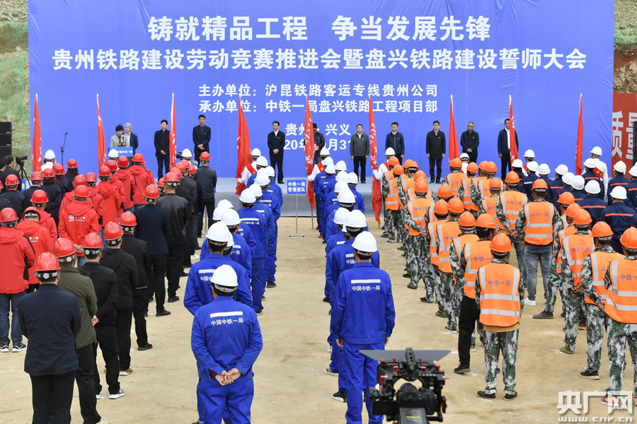 在主題為“鑄就精品工程 爭當發(fā)展先鋒”的勞動競賽誓師大會現(xiàn)場,貴州省總工會副主席楊杰說,貴州省是西部大開發(fā)的重要戰(zhàn)略支點,是新時代構(gòu)建西部大開發(fā)新格局、推動西部地區(qū)高質(zhì)量發(fā)展的重要力量。2020年是貴州省全面建成小康社會和“十三五”規(guī)劃的收官之年,也是貴州省鐵路建設(shè)極其重要的一年。在盤興鐵路建設(shè)現(xiàn)場舉行的貴州省鐵路建設(shè)勞動競賽推進會,將全力推動貴州省中長期鐵路網(wǎng)規(guī)劃項目落實落地。