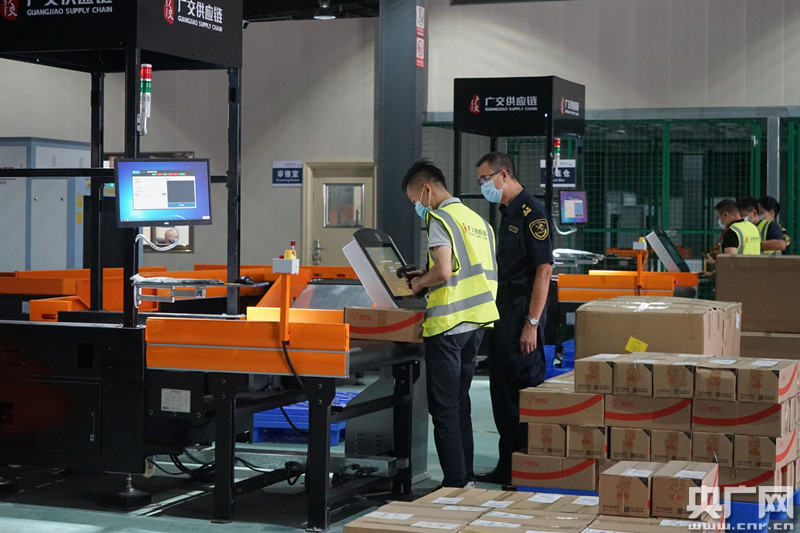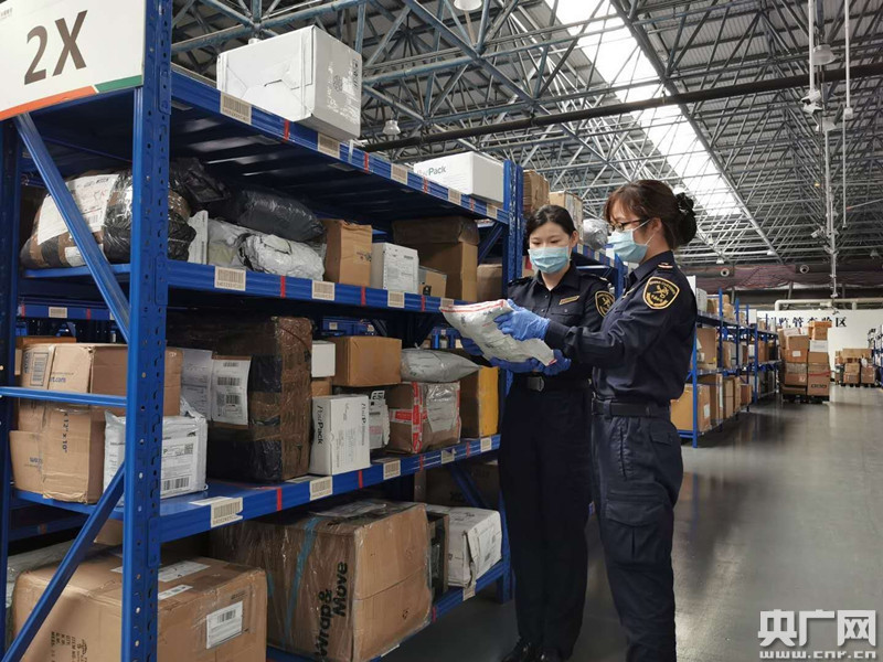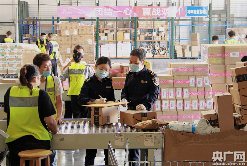 佛山海關(guān)駐南海辦事處關(guān)員對(duì)跨境電商進(jìn)口貨物進(jìn)行監(jiān)管(央廣網(wǎng)發(fā) 海關(guān)供圖)