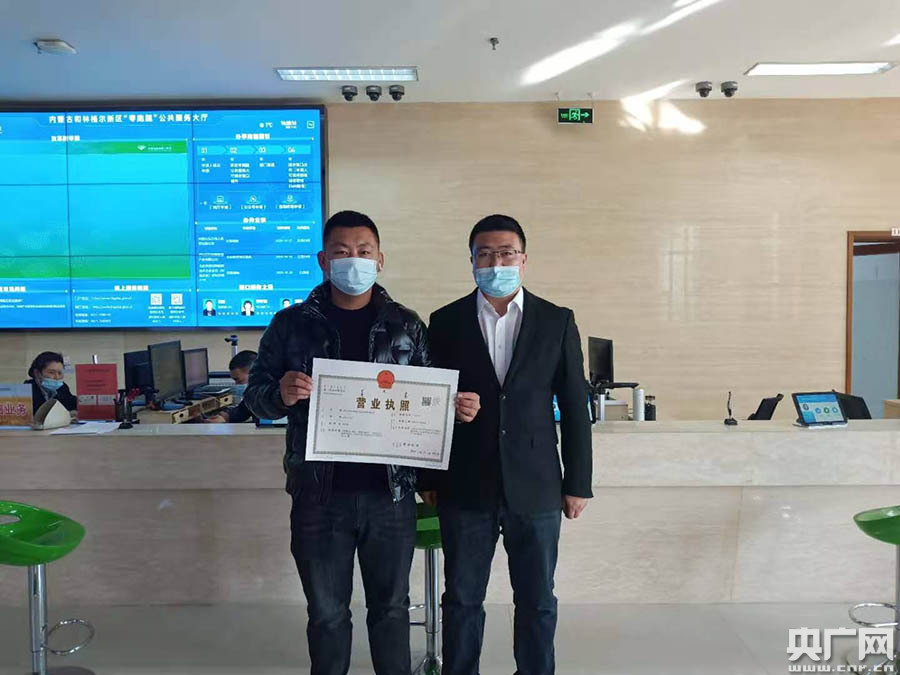 某公司通過“企業(yè)登記全程電子化”領(lǐng)取營業(yè)執(zhí)照(央廣網(wǎng)發(fā) 和林格爾新區(qū)管委會供圖)