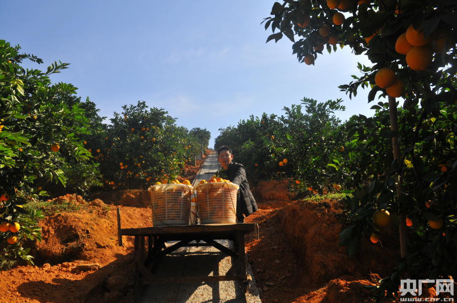 果農自建了軌道臍橙運輸車運送臍橙,減輕了勞動強度(央廣網發(fā) 通訊員供圖)