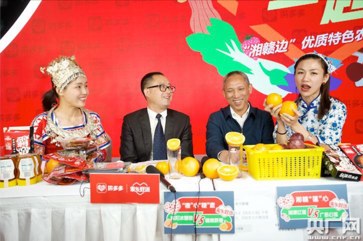 央廣網(wǎng)南昌11月14日消息(記者謝元森)當(dāng)贛南臍橙遇見麻陽冰糖橙,當(dāng)廣昌白蓮遇到湖南湘蓮,當(dāng)南昌拌粉遇到長沙米粉……這些湘贛優(yōu)質(zhì)農(nóng)產(chǎn)品的碰撞會擦出怎樣的火花?11月13日,第二屆江西農(nóng)業(yè)博覽會正式拉開帷幕,作為線上農(nóng)博會的重頭戲,拼多多“湘贛品牌農(nóng)產(chǎn)品大聯(lián)播”的直播間引來了大量網(wǎng)友圍觀。