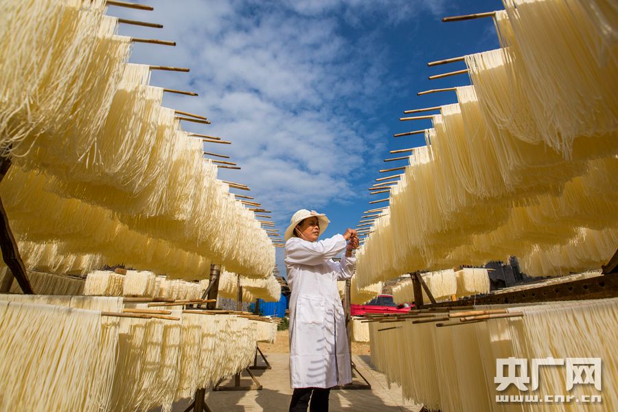 都昌縣陽峰鄉(xiāng)金星村村民在晾曬面條(央廣網(wǎng)發(fā) 通訊員供圖)