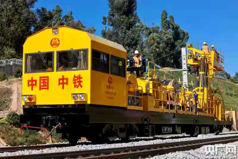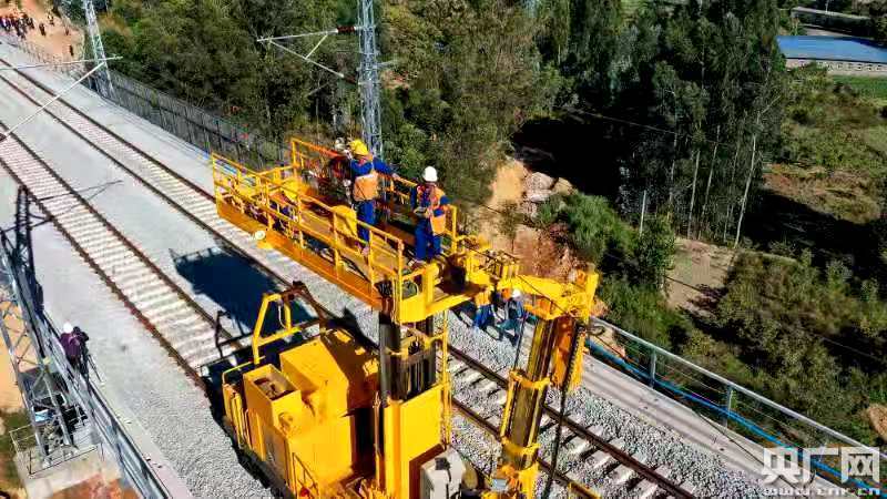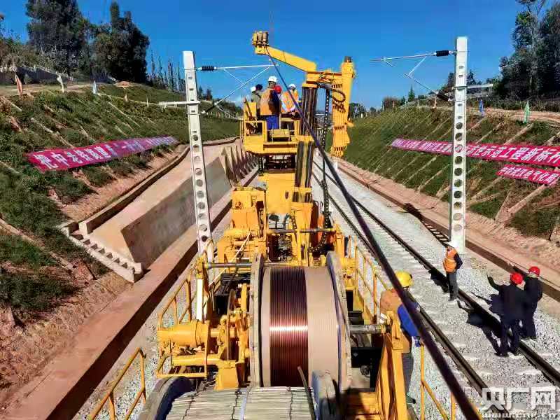 央廣網(wǎng)玉溪11月19日消息(記者李健飛 通訊員王旭東 周志強 鄒曉峰)11月19日,中老鐵路國內(nèi)段云南玉溪研和至峨山區(qū)間,全線首條電氣化接觸網(wǎng)導(dǎo)線開始架設(shè),與此同時,國外段萬象北至萬象區(qū)間同步架設(shè)接觸網(wǎng),標志著中老鐵路全線“四電”工程施工進入施工關(guān)鍵階段。