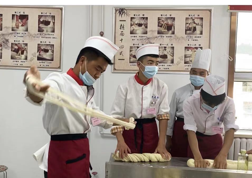 甘肅省臨夏回族自治州東鄉(xiāng)職校開展拉面培訓(xùn),學(xué)員在學(xué)?梢悦赓M學(xué)習(xí)技能 (總臺央廣記者王妍 攝)
